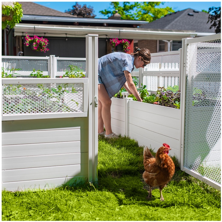 Vita classic 6x6 compositing keyhole, vt17107 raised garden bed, white. They surrounded the center compost with a piece of willow fencing. Large raised garden bed with pest fence no current seasonal shipping restrictions sturdy, easy to assemble pieces easy access for planting and weeding through.