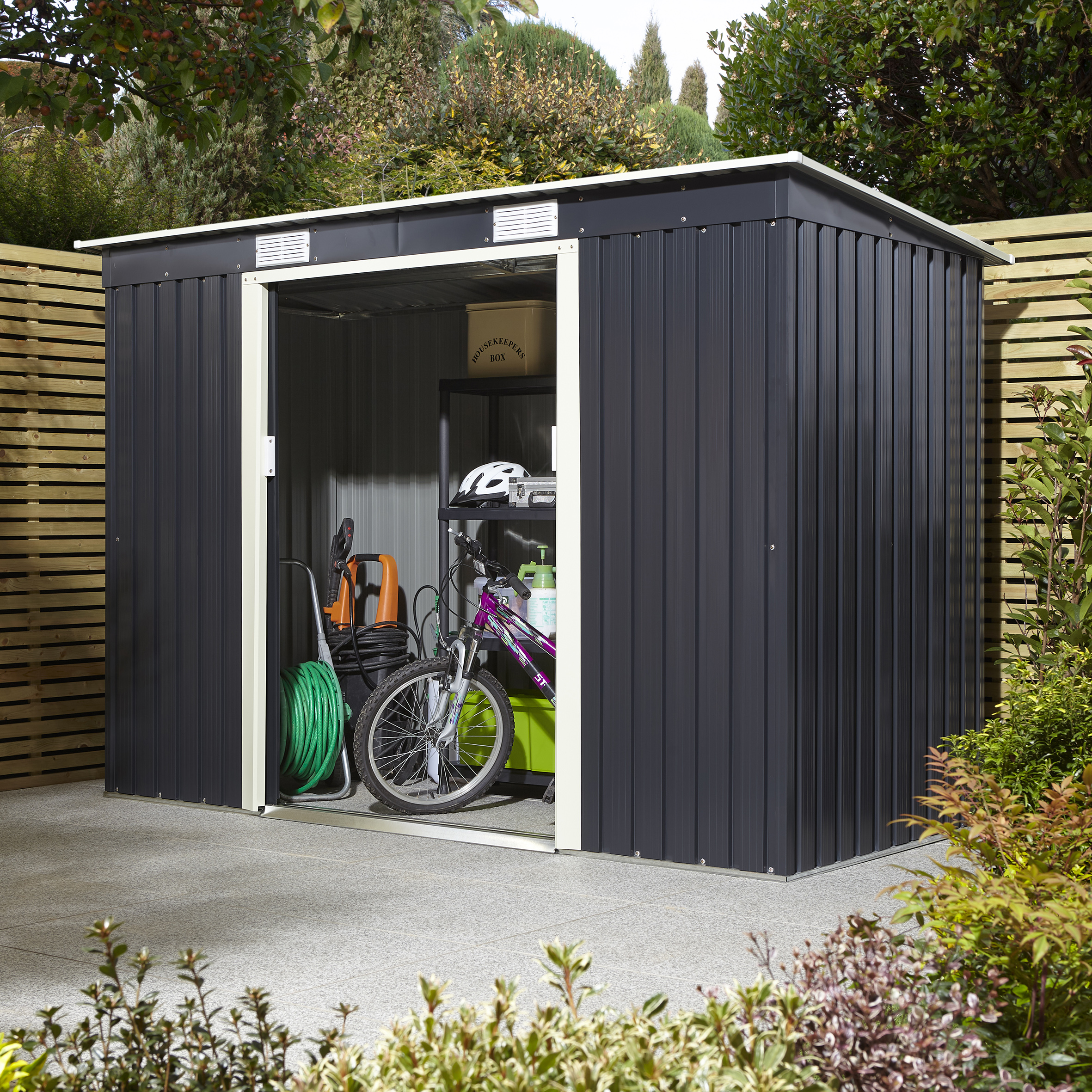 The shed is made from lightweight but tough metal which is finished in. Keter Premier 75 x 7ft Double Door Outdoor Apex Plastic Garden Shed. The Overlap Dip Treated 8 x 6ft Apex Shed from Forest is a great storage solution for all types of large gardening equipment.