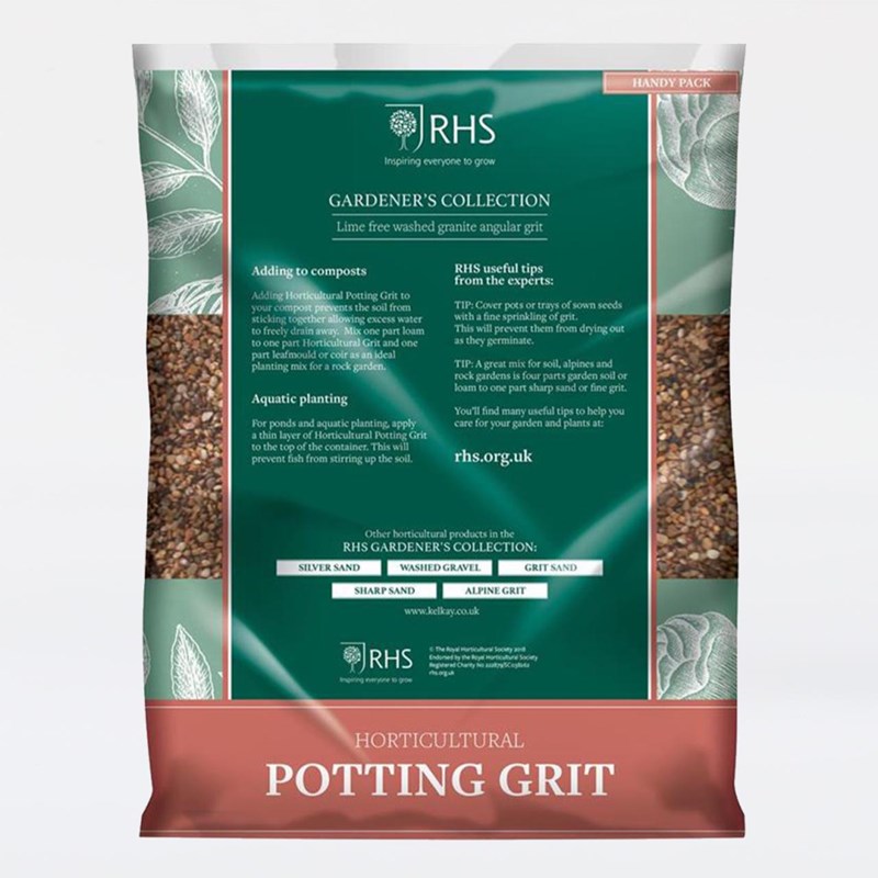 Adding to composts ponds & aquatic planting alpines & rock gardens improves drainage & aeration to help roots grow deeper and produce stronger plants. Horticultural potting grit is also used to weigh down plant pots and containers, as well as used as a top dressing for newly planted patio and ornamental plants. The rhs horticultural potting grit large bag from kelkay is a lime free washed granite angular grit.