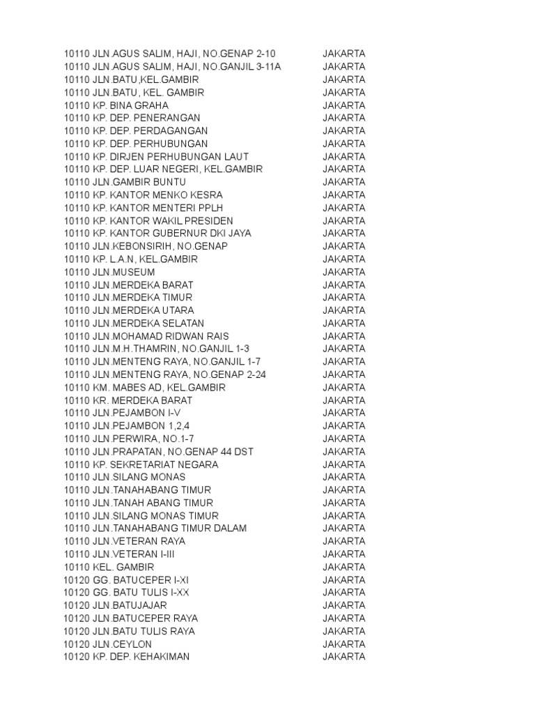 Berikut daftar kode pos Jakarta Barat. Kode POS Kecamatan Cakung 13910 - 13960 Kota Jakarta Timur - urut DesaKelurahan - hal 1. Pt balai lelang internusa pelelang.