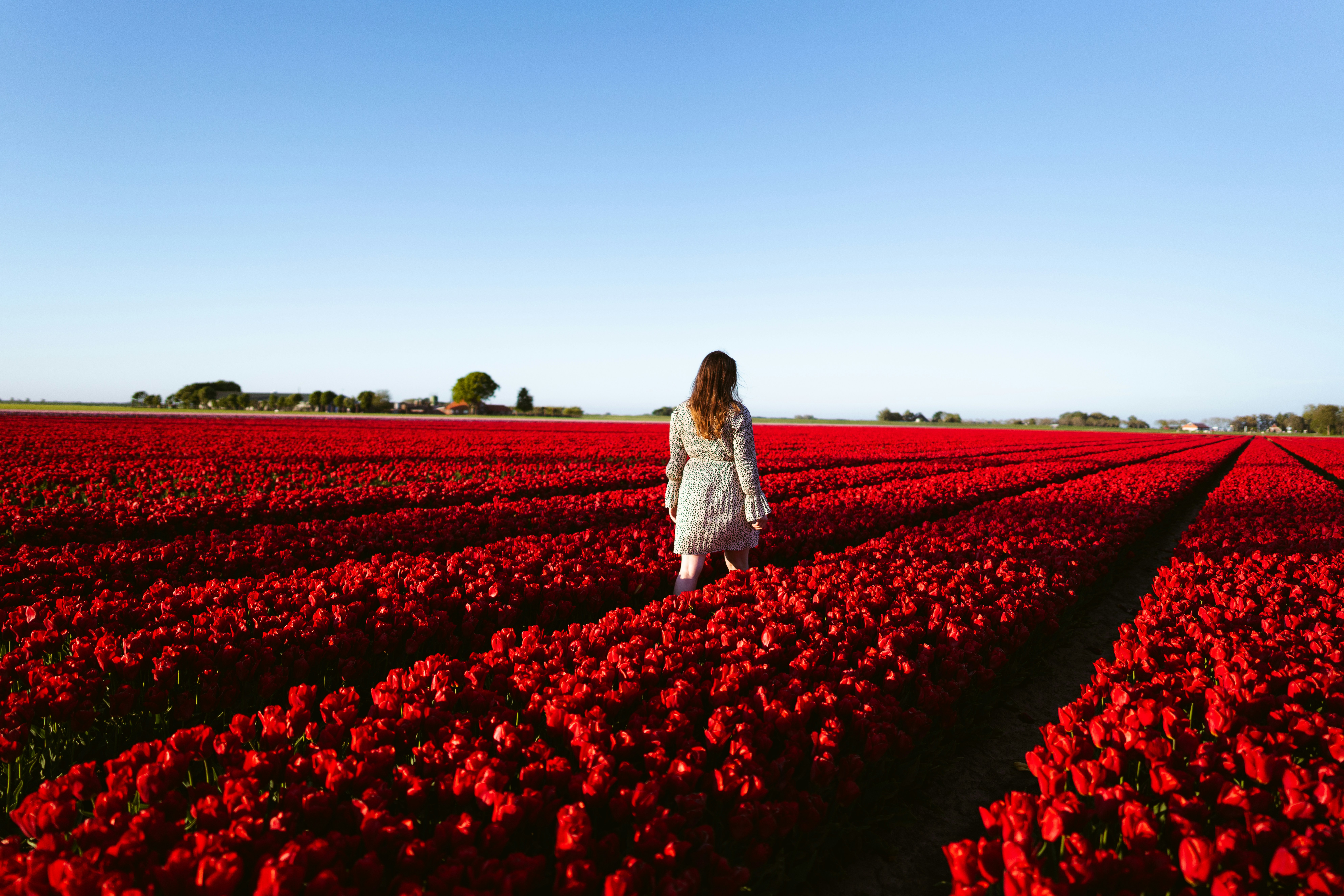 Woman In White Dress Standing On Red Flower Field During Daytime Photo Free Human Image On Unsplash