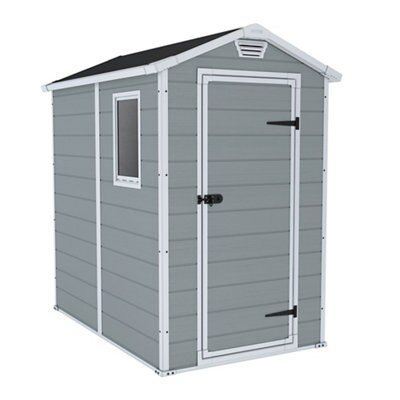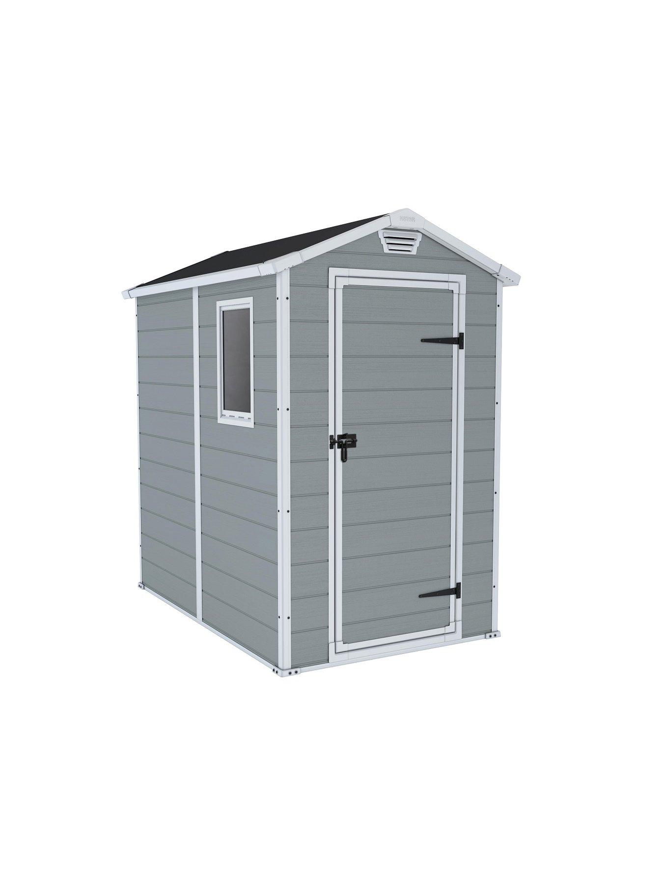 Keter Manor 6x4 Apex Grey Plastic Shed with floorThis Keter 6x4 apex double resin wall polypropylene shed is ideal for storing garden tools and equipment and it is a great size for. Stretching 4 ft wide. ColdShine 6x4ft Garden Shed Lockable Metal Sheds Outdoor Storage Bike Shed Outside Tool House with Sliding Doors and Base Frame for Backyard Patio Lawn.
