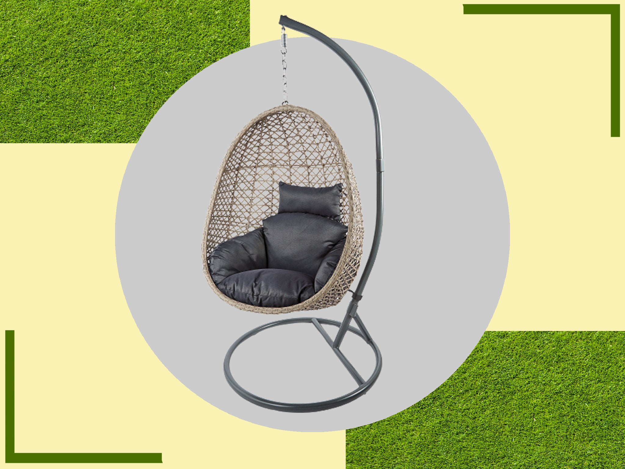 Hanging egg chair, £149.99, aldi. Add some seriously cosy, affordable style to your garden, patio, decking or balcony this summer, with this amazing outdoor egg chair. Best garden swing chair for the porch: