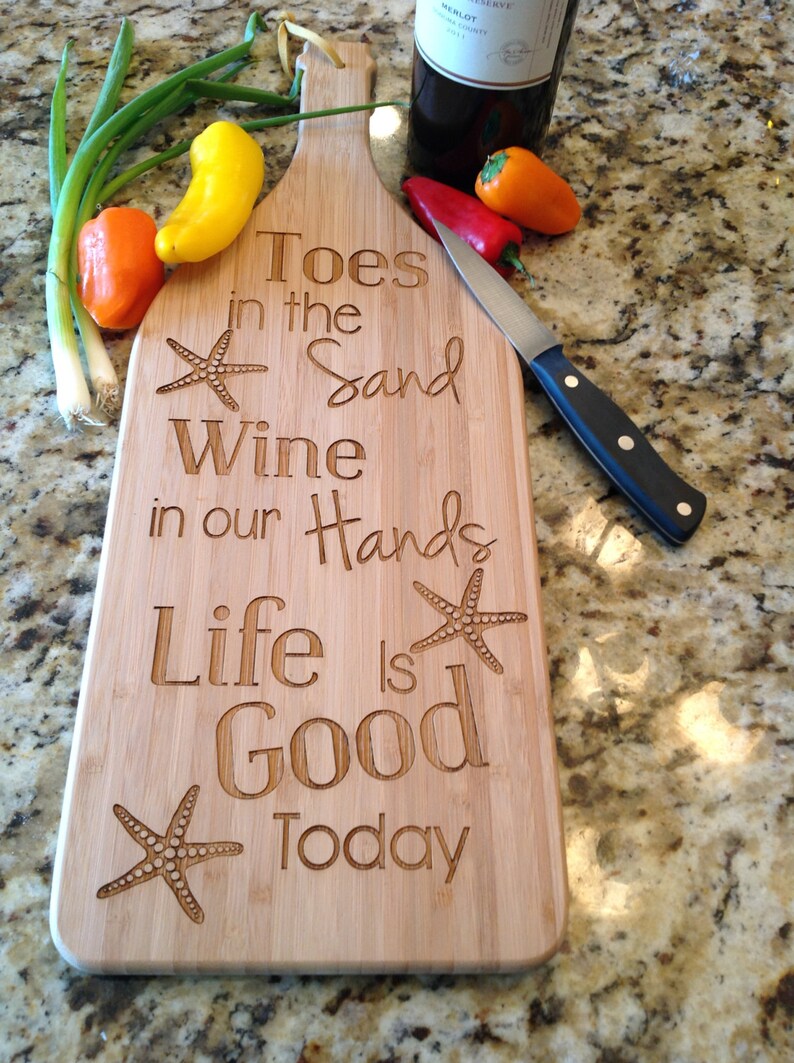Toes In The Sand Wine Bottle Cutting Board Beach Decor Etsy
